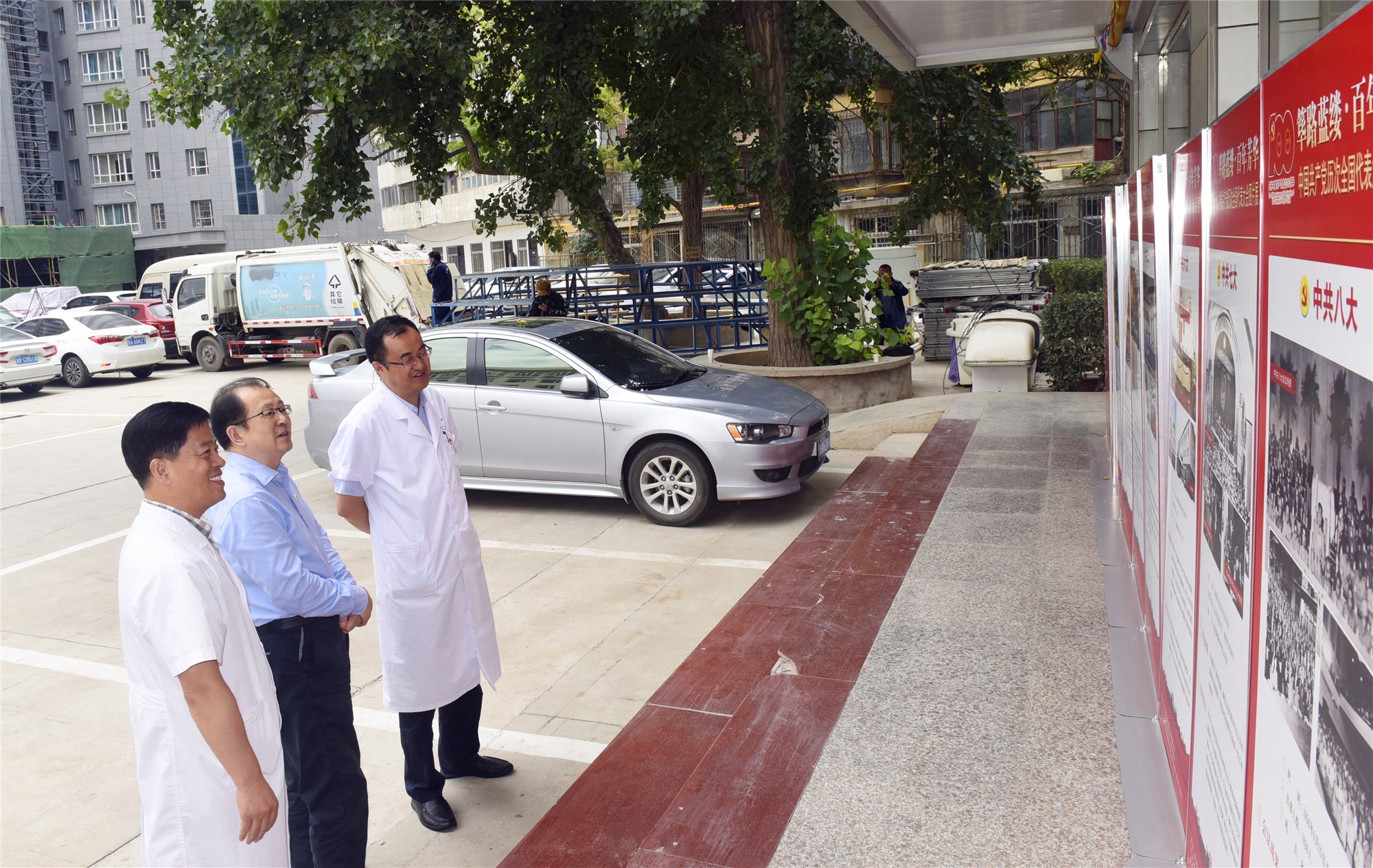 此次展览由医院党委办公室、院长办公室、院史办公室、纪委办公室和宣传处共同承办。医院各党总支、各支部组织80多名党员和干部职工及书画爱好者参加开幕式并现场观看展览。