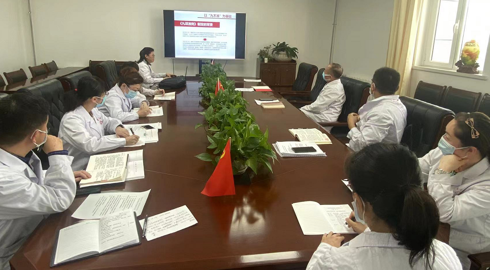 此次活动中,招标采购科党支部书记方岳领学传达了十九届中央纪委六次全会、省纪委十三届六次全会精神、省卫健委2022年党风廉政建设会议精神和省中医院2022年党风廉政建设会议精神。纪委办公室党支部书记高雪华从制定背景、适用范围和主要内容等方面对《医疗机构工作人员廉洁从业九项准则》进行了详细的解读。最后与会人员集体观看了电视专题片《零容忍》,在观看完警示教育片后,纷纷表示要以案为鉴、引以为戒,珍惜所在的工作岗位,牢记初心使命,坚定理想信念,从腐败案例中得到深刻警示,从时代先锋中汲取廉洁力量,自觉增强拒腐防变能力,不断增强纪律意识、规矩意识、责任意识,在今后工作生活中做到知敬畏、守纪律、保底线,永葆共产党人清正廉洁的政治本色。