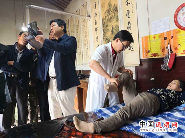 在小岔村姚万华家中,针灸科主任医师邱连利,手外科副主任、骨伤科博士宋渊副主任医师为其诊治了腰椎间盘突出症等骨科疾病,在手法和针灸治疗的基础上,建议他做好日常运动锻炼等康复工作,同时还询问和督促了“一户一策”精准脱贫计划的落实情况。