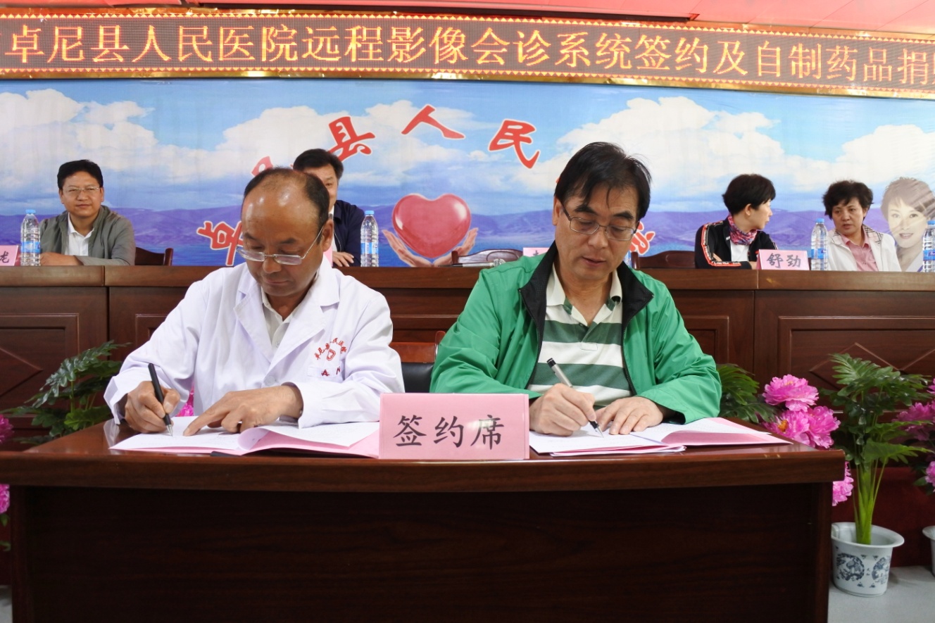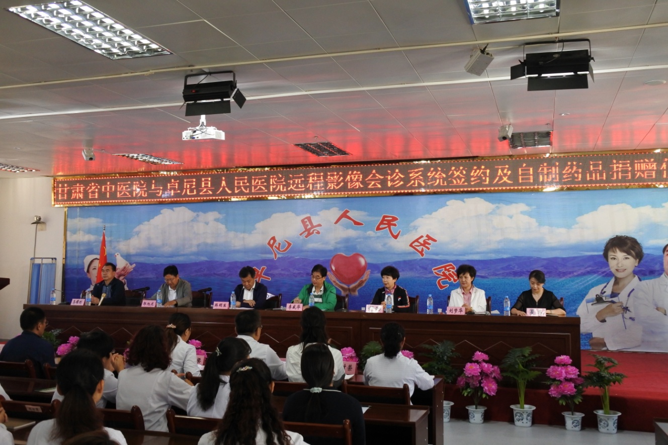 7月25日上午,甘肃省中医院院长李盛华一行赴卓尼县人民医院,举行远程影像会诊系统签约及自制药品捐赠仪式。卓尼县委副书记、县长韩明生出席,县政府副县长郭旭龙主持仪式。