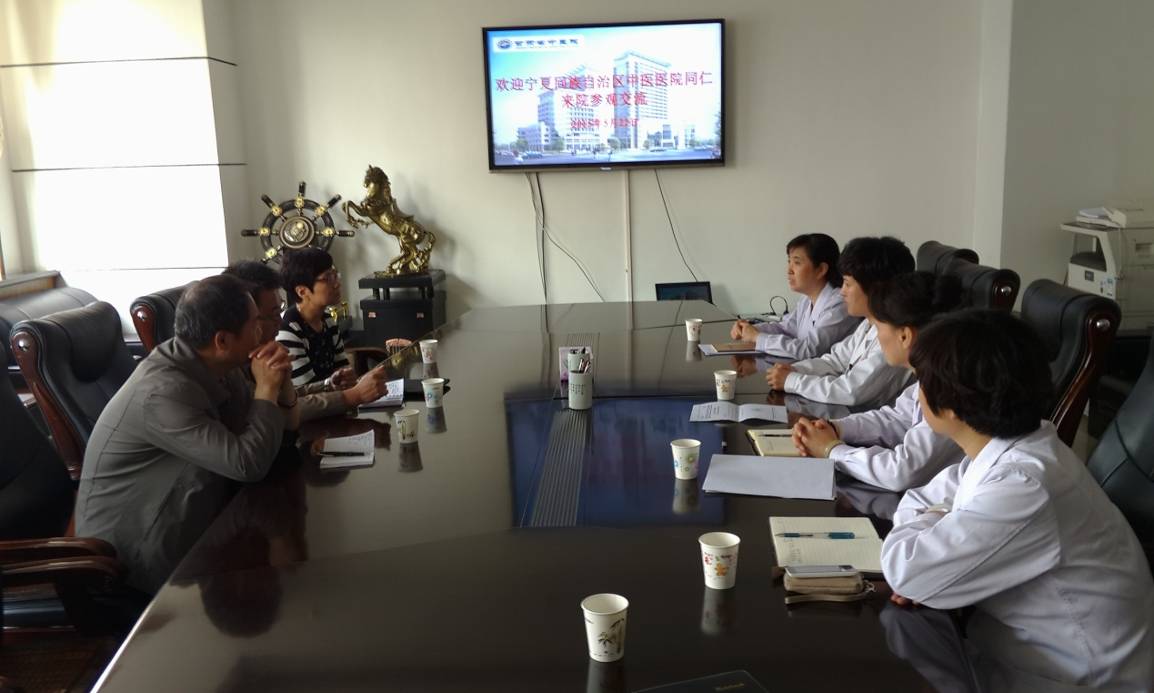 观看医院宣传片后,来宾介绍了宁夏回族自治区中医医院的相关情况,并就中医专项资金管理,绩效核算、分配、考核方面的内容,进行了深入的交流,杨继红处长、杨雅静主任、马真琴主任给予了详细的解答。随后,来宾到计划财务处对接交流。