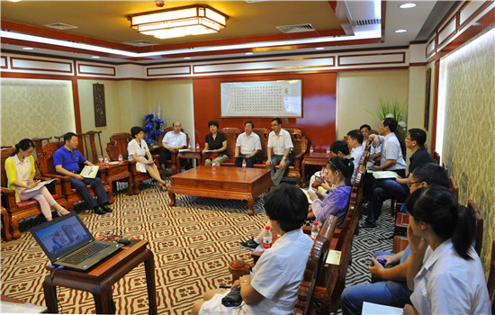 2015年8月21日, 由安徽省中医药学会副理事长、亳州市政协副主席龚艳玲带队,省中医药学会副理事长、安徽中医药大学副校长李泽庚,安徽省针灸医院院长黄学勇,安徽省中医药管理局负责人及安徽省、市、县中医院主要负责人参加的中医药考察团一行14人,来甘重点学习了解中医药发展情况、政府相关政策支持。省中医药管理局副局长郭峰陪同来院参观交流。医院副院长舒劲会见来宾并座谈交流。