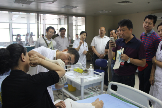 座谈会后,舒劲副院长陪同来宾参观医院老年病科、门诊大厅、风湿骨病科、外治科、中医药文化广场等,向来宾介绍了特色中医文化和技能。