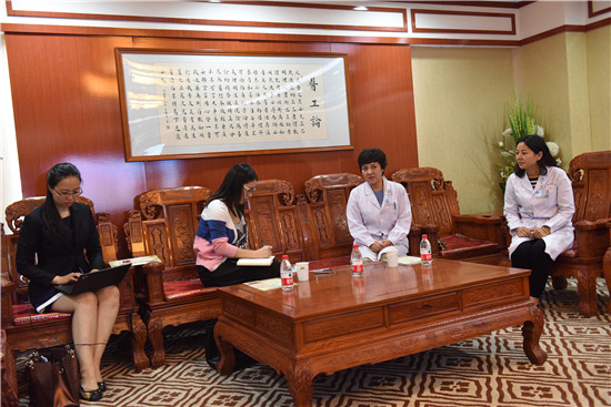 2017 年8月28日下午,国家卫生计生委卫生发展研究中心助理研究员金楠、实习研究员朱安娜来院调研。医院对外协作处处长刘梦华接受访谈。