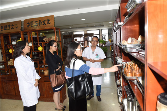 来宾还参观了外治科、康复医学科和药学部,观摩了中医特色疗法。国际医疗部主任刘叶荣陪同参观。