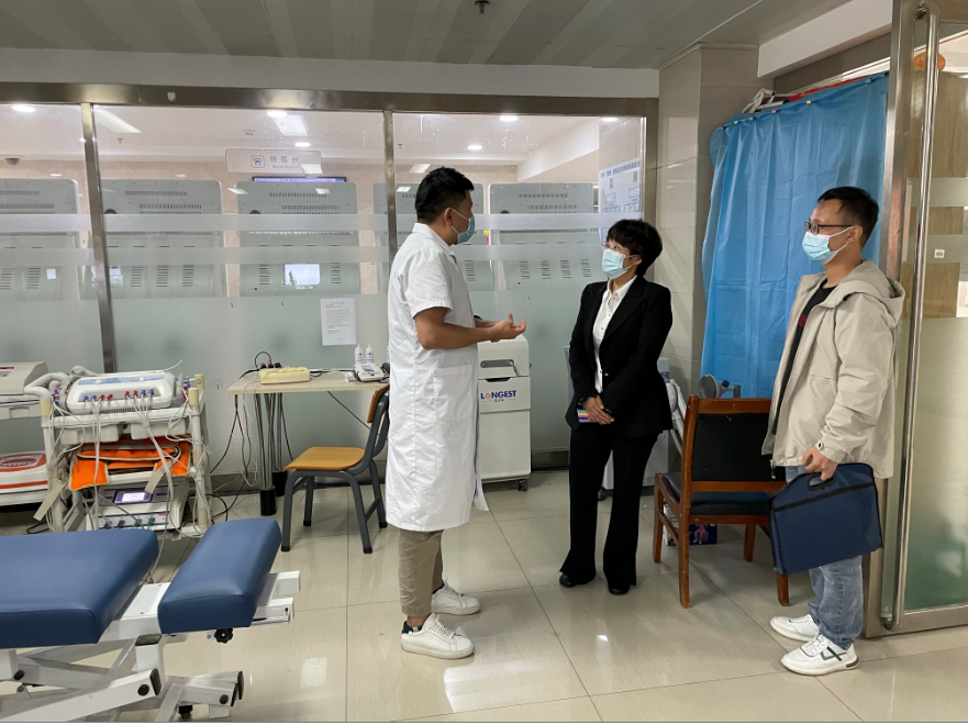 会后,对外协作处负责人陪同来宾分别参观了A座门诊大厅、风湿骨病一科、针灸一科、脊柱骨二科、康复医学科等科室。