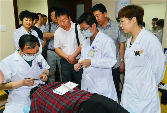 座谈会结束后,舒院长及相关科室负责人陪同张院长等参观了新门诊、风湿骨病科、针灸推拿科、康复科、老年病科中医康复治疗中心,现场演示了小针刀、火龙疗法,蜂针疗等中医药特色疗法。