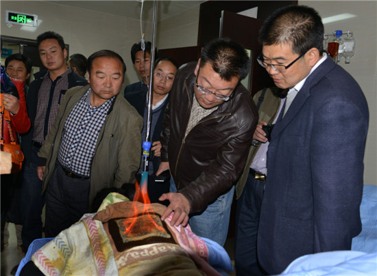 2013年10月19日上午9时,甘南州合作市副市长赵兵、卫生局局长徐朝阳率合作市卫生系统同仁一行14人来我院参观交流。医院副院长赵继荣、对外协作处处长刘梦华、特色医疗管理处副主任王晓萍陪同参观。 赵兵副市长一行先后参观了医院门诊大厅,痹病科、老年病科、康复治疗中心及院内中医文化广场。详细了解,交流了中医适宜技术开展情况、干部保健体系建设情况。