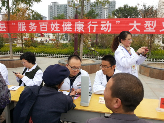 为了认真贯彻落实国家卫生计生委、国家中医药管理局、总后勤部卫生部及省卫生厅关于开展“服务百姓健康行动”全国大型义诊活动周的相关要求,10月11日,根据通渭县卫生局的统一安排,我院驻通渭县中医院支农队员来到通渭县城文化广场,积极参加 “服务百姓健康行动”大型义诊活动。