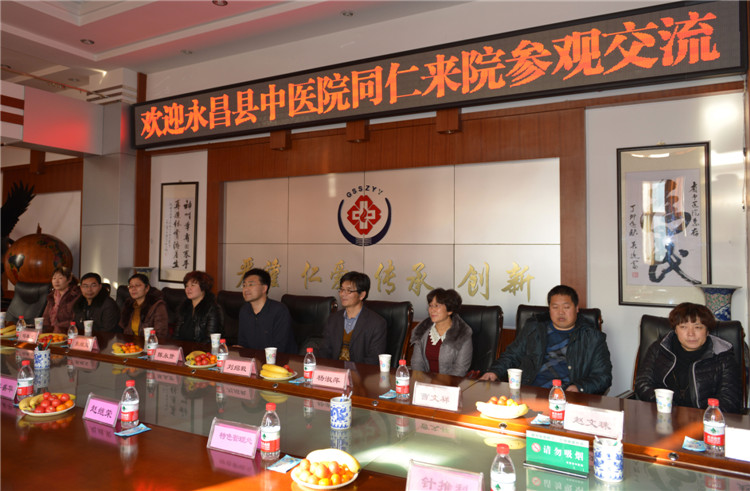 2013年12月11日下午3时,永昌县中医院院长陈永贤,副院长刘绍毅等一行12人来我院参观交流。医院院长李盛华,副院长舒劲、邱连利,护理部、特色医疗管理处、对外协作处、针灸推拿科、康复科等科室负责人与来宾举行了座谈会。