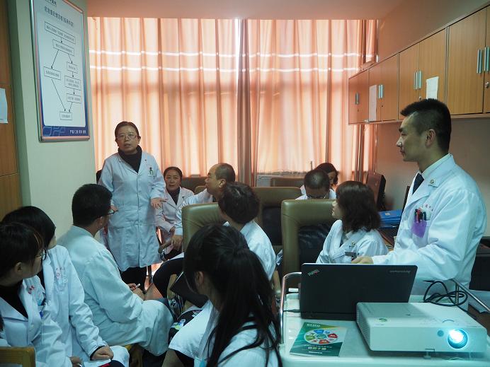 2015年11月18日下午2:30临床教学部督查脾胃病二科教学查房,邀请儿科主任原睿主任医师、妇科副主任许彩凤副主任医师、肾病科副主任张竹君副主任医师、老年病科雷作汉副主任医师作点评专家,脾胃病二科老师、实习学生、临床教学部30余人参加了教学查房。