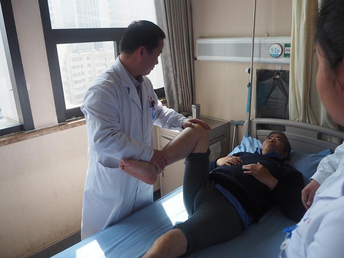 风湿骨病科选择一例中医诊断痹症(湿热阻络型),西医诊断类风湿型关节炎的病例作为教学病例,教学查房教师为风湿骨病科李伟青主治医师,甘肃中医药大学中医专业实习生马燕娇汇报病史,李伟青主治医师对患者进行专科体格检查,并指导实习学生为患者测握力进行体会。