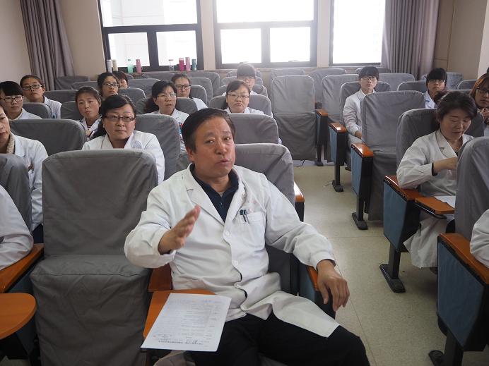 临床教学部副主任韩艳主任医师最后对新教学查房规范要求进行讲解,在过去的教学查房中我们重点查学生,现在新教学查房规范是查我们的带教老师,目的是培养我们的带教老师如何将自己的临床知识在限定的时间内如何传授给我们的实习学生。这种教学查房形式,加强了带教老师这个主体的教学理念和教学意识,启发、引导实习学生逐步建立科学的临床思维,不断提高实习学生的临床诊疗水平。