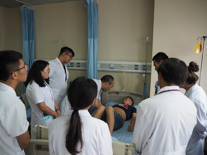 2016年8月31日下午临床教学部督查脾胃病二科教学查房,邀请妇科副主任许彩凤副主任医师、外二科副主任何国华副主任医师、急诊骨科副主任张天太副主任医师、老年病科雷作汉副主任医师作点评专家,脾胃病二科老师、实习学生、临床教学部人员参加教学查房。
