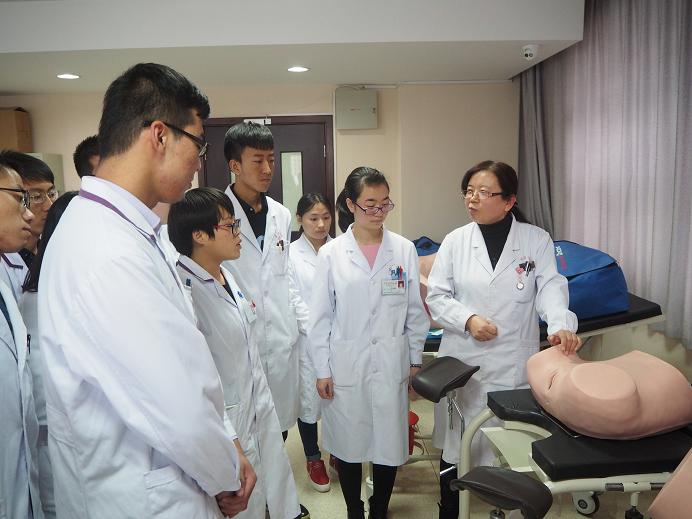 在示教室,许彩凤副主任应用多媒体并结合教学病例就腹痛病(女性盆腔炎性疾病)的诊断、病因病机、分型、鉴别诊断、中医综合治疗等进行总结讲解,在讲解过程中对学生进行提问。学生就盆腔炎复查要通过什么检查等问题和老师做了互动。妇科主任杜敏主任医师对体检中的不足和盆腔炎四联疗法给予补充讲解,并希望同学们从教学模拟人身上多练习、多操作,掌握妇科的基本检查。