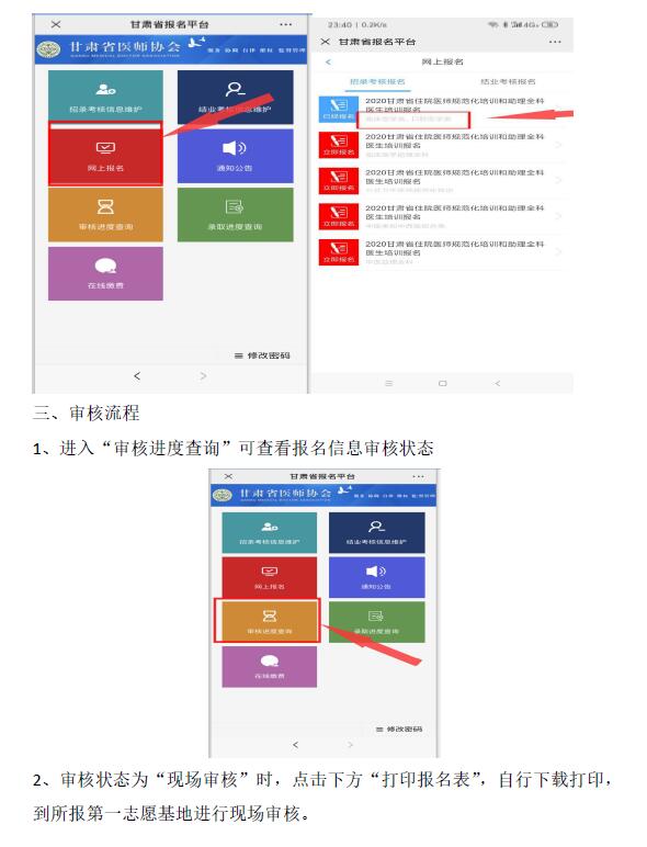 2020年我省采取网上报名。报名方式:微信搜索“甘肃省医师协会”公众号报名;也可百度搜索“甘肃省医师协会”进入官网进行报名。