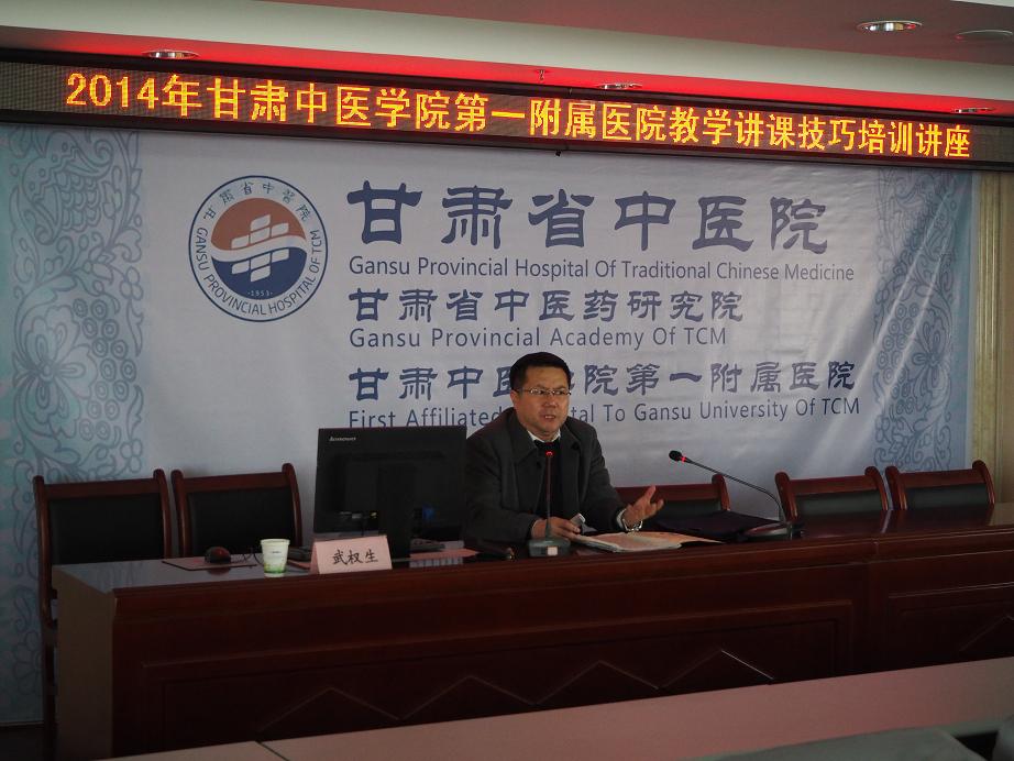 2014年12月12日下午,由临床教学部组织的教学讲课技巧培训在医院A座17楼学术报告厅举办,部门邀请甘肃中医学院武权生教授进行了“教学思路、设计与方法”的专题讲座,医院各教研室、临床科室医护人员及“两段式”教学的老师参加此次培训。