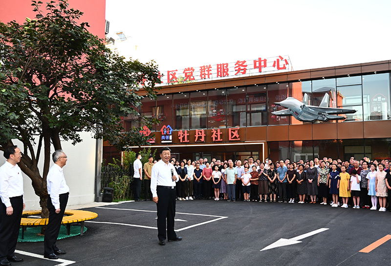 8月16日至17日,中共中央总书记、国家主席、中央军委主席习近平在辽宁考察。这是17日下午,习近平在沈阳市皇姑区三台子街道牡丹社区考察时,同社区居民群众亲切交流。新华社记者 燕雁 摄