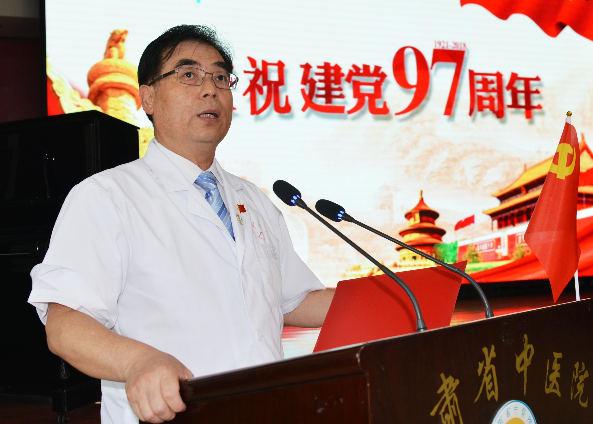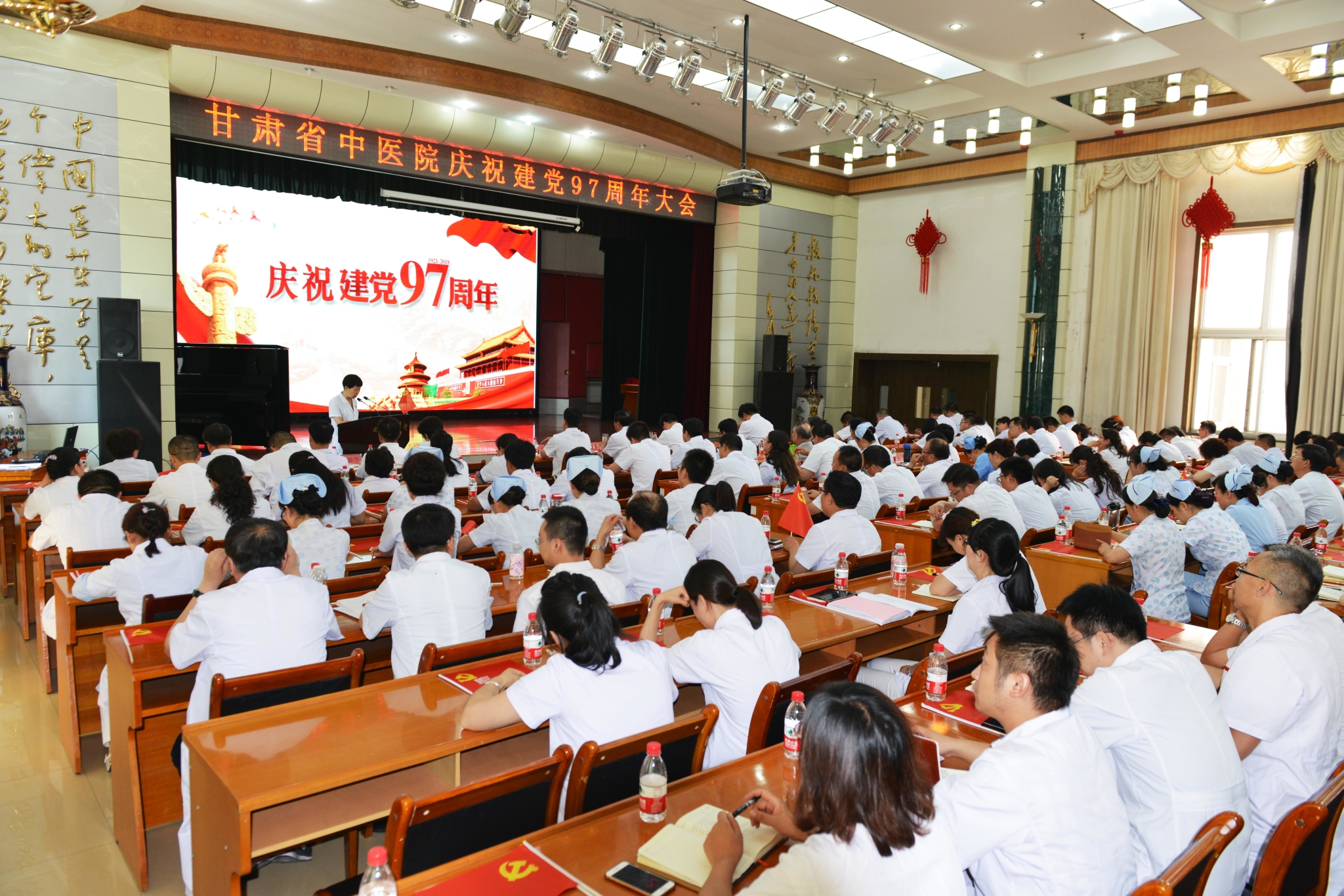 6月28日下午,甘肃省中医院召开庆祝建党97周年大会,回顾党的光辉历程,讴歌党的丰功伟绩,表彰在医院改革发展中涌现出的先进党组织、优秀共产党员和优秀党务工作者,激励全院各级党组织、广大共产党员及全体医护人员在医院改革和发展中冲锋在前、真抓实干、勇创佳绩、贡献力量。