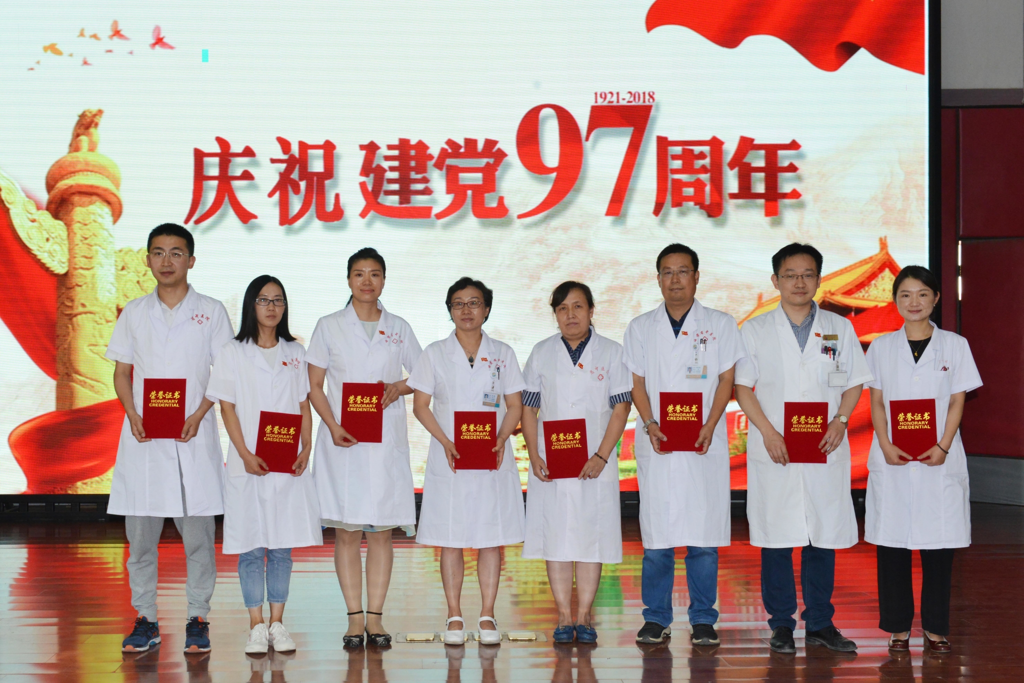 院领导为获得省思想政治工作研究会表彰的医院研究成果先进集体和个人以及优秀共产党员、优秀党务工作者和先进基层党组织进行了现场颁奖。大会结束后,与会人员共同观看了基层党建活动VCR展播和杏林合唱团“赞歌唱给党”歌曲表演。