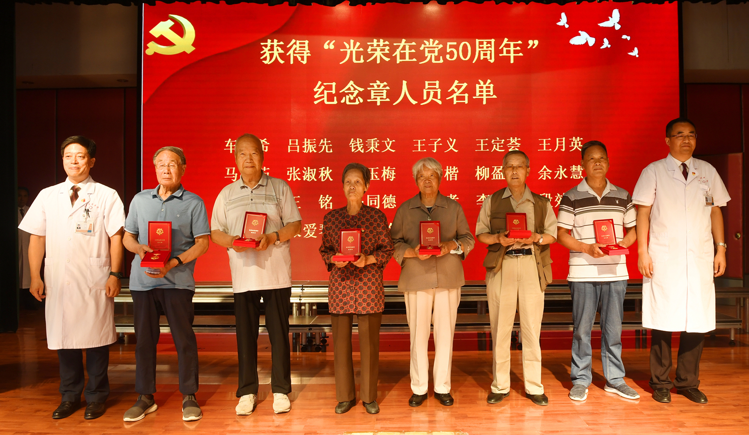 院长赵继荣为“光荣在党50年”老党员代表颁发奖章
