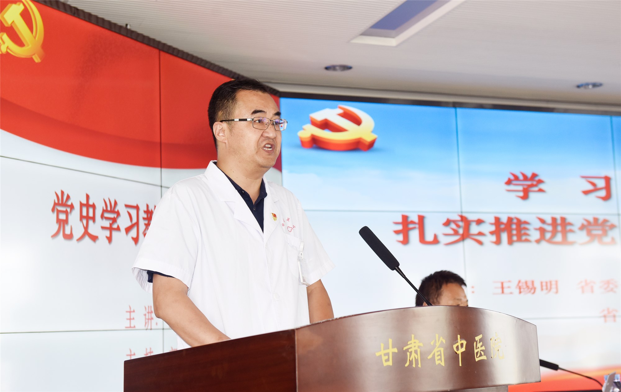 8月27日下午,甘肃省中医院党委举办党史学习教育专题辅导报告会。省委党史学习教育第一巡回指导组组长、省人大常委会科教文卫工作委员会副主任王锡明以认真学习宣传贯彻落实习近平总书记“七一”重要讲话精神为切入点,对扎实推进党史学习教育走深走实作了专题辅导。省中医院党委书记郭峰主持报告会并对党史学习教育提出要求。