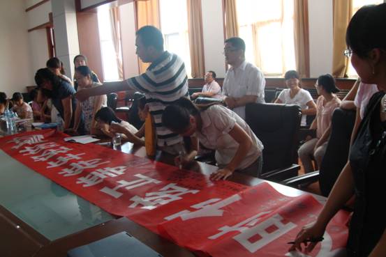 目前医院的大政方针已定,总体规划初成,干部队伍刚刚调整,职工总体素质不错,后备人才趋之若鹜。应该说发展势头不错!大时代的弓弦正等待年轻的臂力!党务部有意识组织刚入院的青年才俊们进行了签名倡导活动,引导大家立足岗位,勤于工作,自觉奉献,为医院改革与建设贡献自己的聪明才智。三十多位青年才俊签名响应。有的写上人生格言,有的写上美好祝愿,有的写上殷殷期望,大家决心在人生新的征程里写下浓墨重彩的一笔。