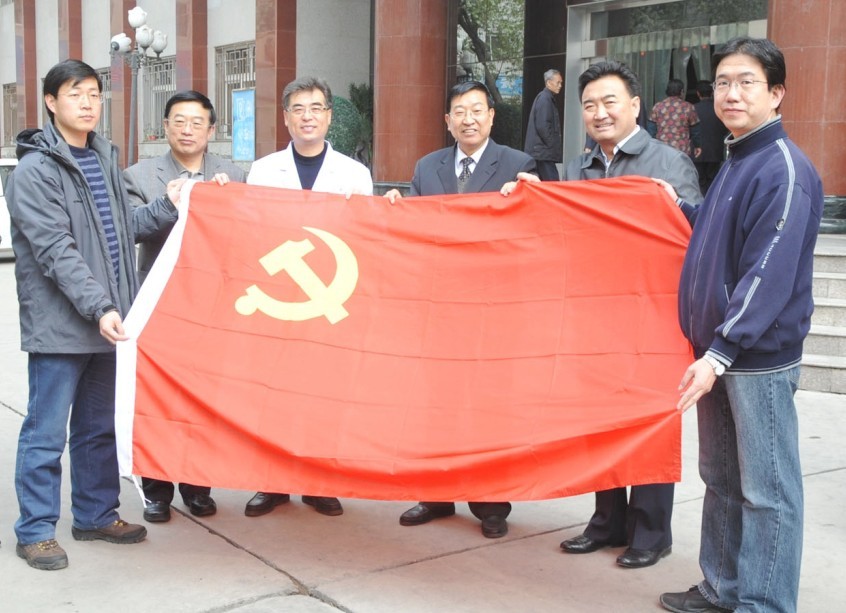 (厅党组书记厅长刘维忠、中医药管理局局长甘培尚、院党委书记妥建福、院长李盛华为临时党支部授旗)