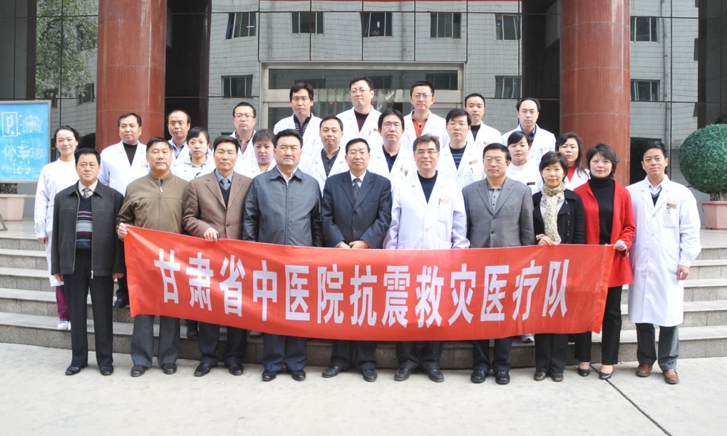 青海玉树强烈地震地震发生以后,为积极应对灾情,5月14日下午,甘肃省中医院迅速启动突发事件应急预案,成立抗震救灾领导小组,对医疗救治工作作出全面部署。医院医务部、护理部、总务部、药剂科、设备科等部门夜以继日,通力合作,积极备战。灾后第一时间,医院组织普外科、神经外科、骨科、麻醉手术科以及护理、感染管理等方面的业务骨干20人组成医疗救治队;配备14275元救援物资、73581元救援设备、18793元急救药品、3000余份宣传资料以及 4台救援车辆,另外,医院设法装备50间备用病房,随时准备接治灾区转运伤员。