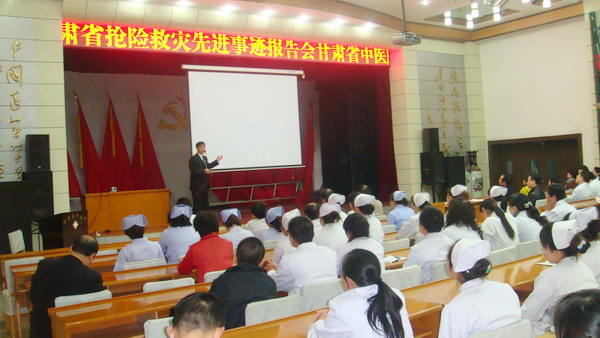 今日上午9时,甘肃省中医院240余名干部职工在综合楼多功能厅观看了由甘肃省卫生厅主办的“2010年甘肃省抢险救灾先进事迹报告会”电视电话视频会议,会议主会场设在省卫生厅,报告通过视频会议系统向全省县级以上卫生局各分会场转播,省卫生厅刘维忠厅长主持会议,会议第一项议程默哀完毕后,抢险救灾先进代表们一一做了激荡人心的演讲报告,医院干部职工在院领导的带领下认真听取了报告。报告用生动的记录影像资料、详实的材料回顾了在2010年青海玉树地震和甘肃舟曲特大泥石流灾害现场受灾情况与抢险救灾部分过程。