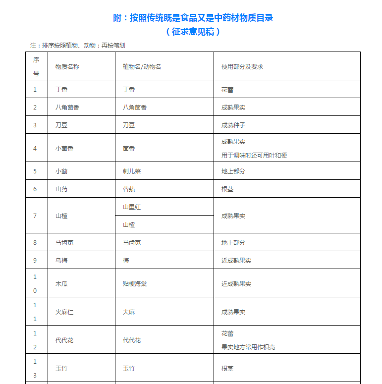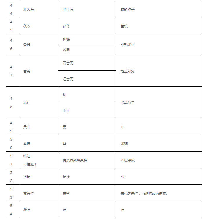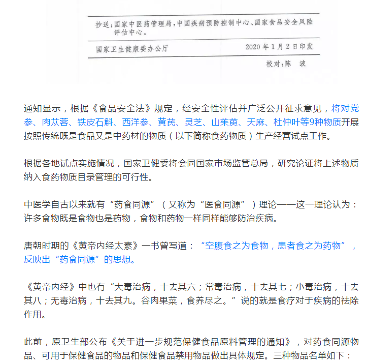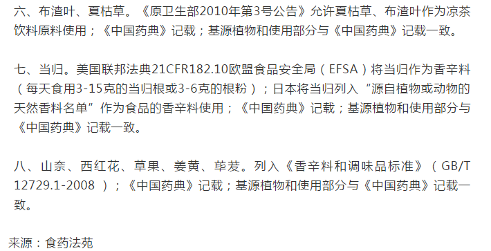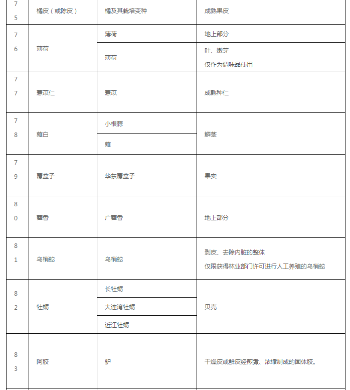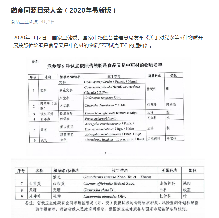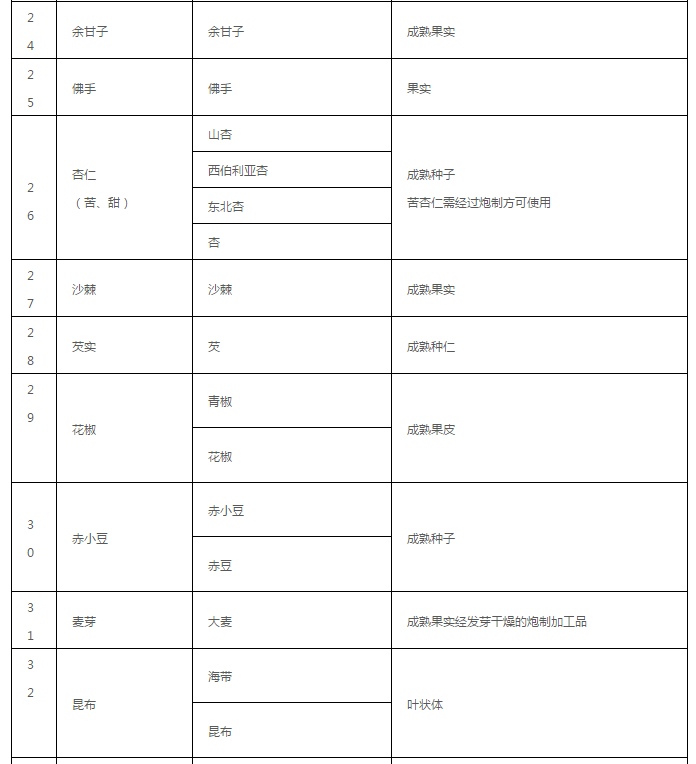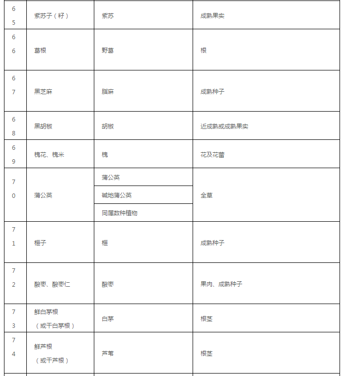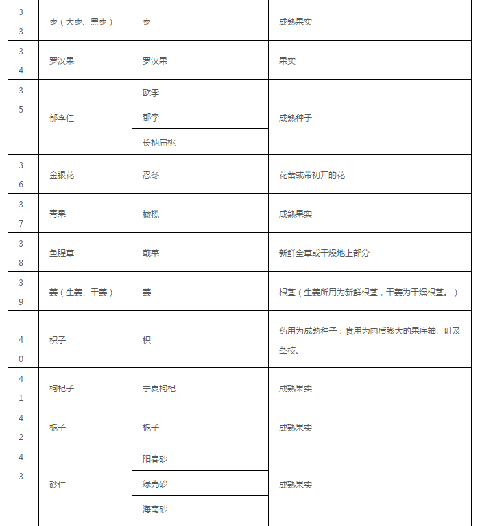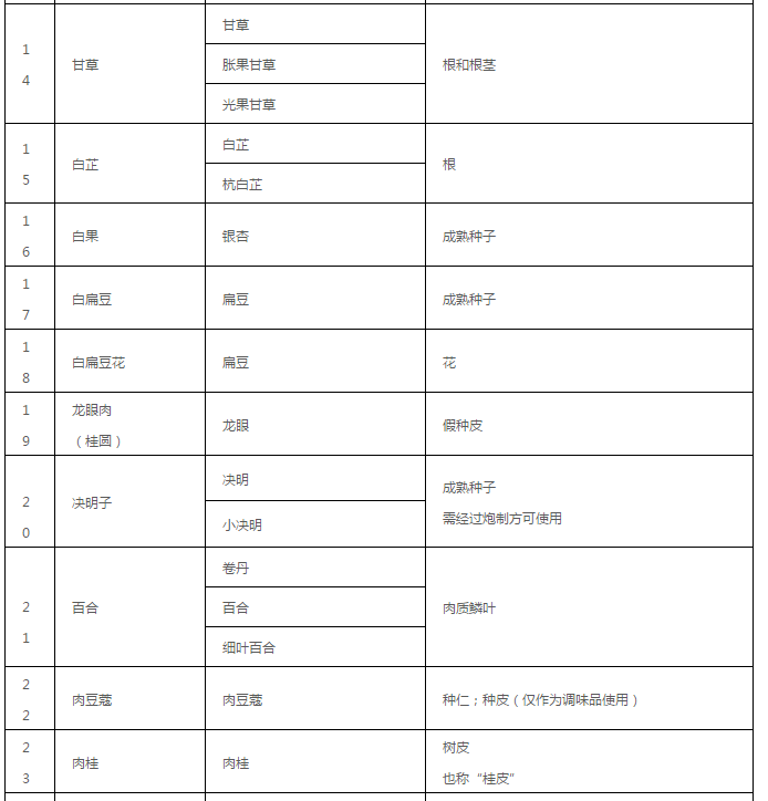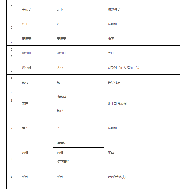 药食同源目录大全(2020年最新版)