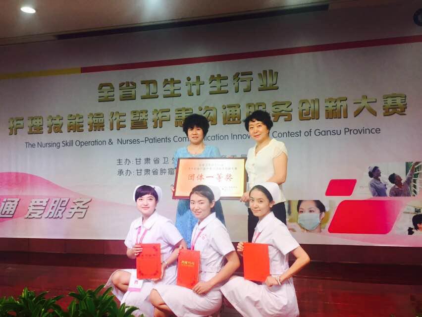 7月18日,由甘肃省卫生和计划生育委员会主办,甘肃省护理学会和甘肃省肿瘤医院承办的“2015年全省卫生计生行业护理技能操作暨护患沟通服务创新大赛”在省肿瘤医院举行。我院由护理部主任王颖带队,副主任张丽平指导,乔娇(ICU)、张赟丽(整复、康复骨科)、刘娟(脊柱骨三、骨肿瘤科)组成参赛队参加了此次比赛。