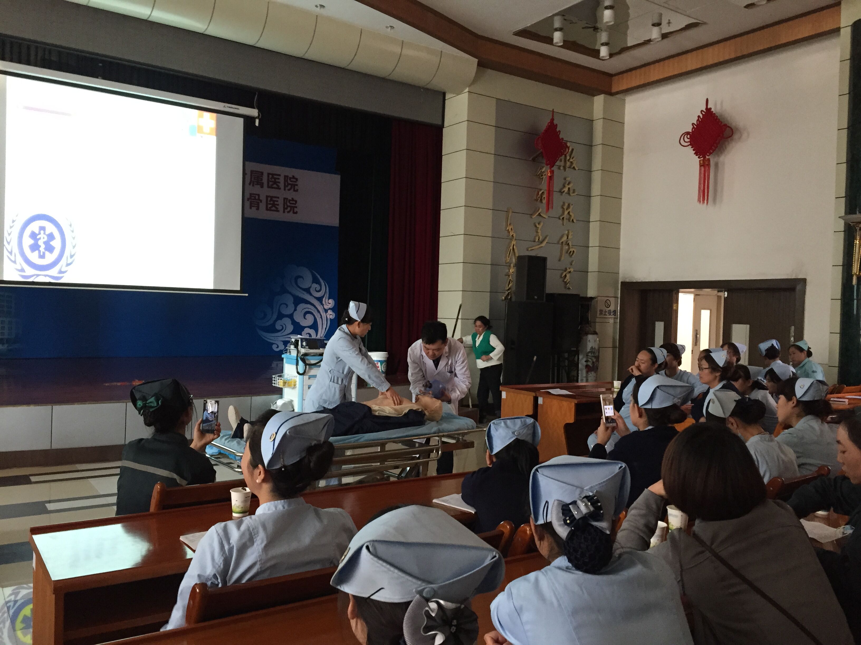 此次业务查房为全院护理人员抢救患者,四人配合法抢救流程做出了示范,受到护理部郭秀珍副主任护师及各位护士长的好评,也受到各位护理姐妹的认可,大家都表示受益匪浅。然而这次演练中依然存在很多不足,运用到临床工作时依然会有很多值得改进优化的地方。各位护理姐妹也提出了很多疑问:如遇到患者肋骨骨折时,是否进行胸外按压;胸外按压时,是否可以同时通气;急救时应该先救命还是先治病,先瞄准还是先开枪。这些问题都由急救中心院前医师吴方亮和张丽娟护士长做出了解答,使得这次护理业务查房真正体现参加参与的目的。