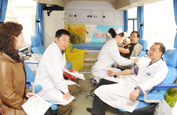 近年来,医院积极宣传无偿献血,倡导“人道、博爱、奉献”精神,多次组织职工进行无偿献血。无偿献血是社会公益事业,是每一个健康公民应尽的义务和责任,是事关人民群众身体健康和生命保障的民生大事,体现的是城市文明进步水平,要让我们每个人都献出一点爱,共同为构建社会主义和谐社会做贡献。
