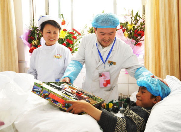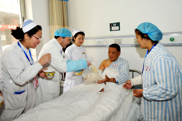 4月15日晚至16日清晨,中国空军运输机从灾区陆续向甘肃转来128名伤员,省中医院收治35名,陪员26名。在伤病员和陪员来到医院后,医院及时为他们配备了各种生活用具,在病房装束鲜花调节空气,为陪员定宾馆休息,餐饮中心每天提供富有营养价值的饮食,送到病人床头,医护人员为病人喂饭喂药。为尊重藏族同胞生活习惯,医院千方百计为他们购置了酥油、青稞面、炒面及牛羊肉,使伤病员心情愉悦。医院职工纷纷为伤病员送去各种鲜花和礼品,祝愿他们早日康复。