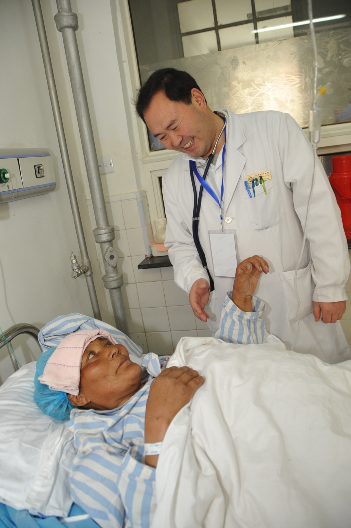 他不仅在诊治上对每位伤员细致入微,而且在生活方面面面俱到。14床伤员尼格得知女儿和爱人在甘肃省人民医院接收诊治,因对女儿和爱人的牵挂,出现焦虑、烦躁、情绪非常低落等情况,他得知后积极设法与其家属联系,于凌晨6时在卫生厅领导及院领导的帮助下,尼格与其女儿接通了电话,情绪也渐趋平稳。9岁的尕玛西然,因骨盆骨折需骨牵引治疗,在牵引治疗了不长时间,尕玛西然因疼痛哭闹不配合治疗,他妈妈因疼爱孩子暗中私自拆除了牵引治疗,他为确保治疗效果,他守护在病房,一守就是一宿,使治疗得到了保证。来自玉树灾区的伤员中只有一位是汉族,其余均是藏族,与伤病员交流存在很大困难,他通过与懂汉藏语言的志愿者对藏族饮食习惯的交流,了解到藏族同胞喜欢吃糌粑、酥油,于是他积极想办法,在兰州无法买到,但他并没有因此而放弃,又积极向院方反映,在院方及厅领导的帮助下,专门从甘南、青海等地为他们购买,使每位伤员及其家属吃到了他们喜欢吃的食品,享受到家乡的氛围。
