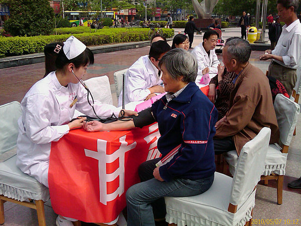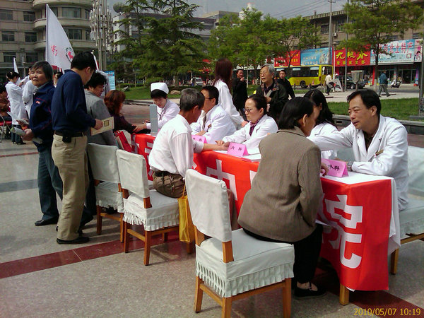 2010年5月7日早上9:30分,医院在铁路局金轮广场参加了由省红十字会组织的第63个世界红十字日义诊及健康宣传活动,今年世界红十字日的主题为服务世博。在为期两个半小时的义诊宣传活动中,共接待患者70余人次。马红梅、朱晓铭、陈杰、张玉琴、杨志华、苟海粉等8名同志参加了义诊宣传活动。