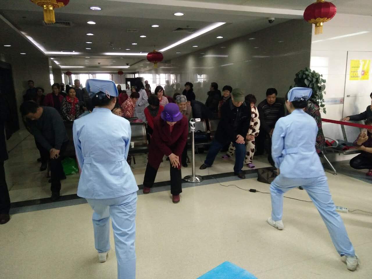我科护士示范关节保健操,教会病人做保健操