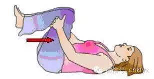 2. 抬高双膝至胸口,可以用手轻轻拉双膝至胸口;