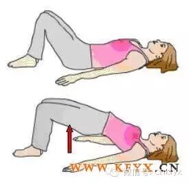 2. 一点点抬高髋部,不要拱起背。注意不要让你的腹部凸出来,这样可以避免拱背。保持肩和膝处于同一直线;