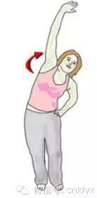 1. 高举一侧上臂过头,连腰一起向对侧侧弯;另一只手可以叉在腰。侧弯的时候不要扭曲或者猛地用力拉伸;