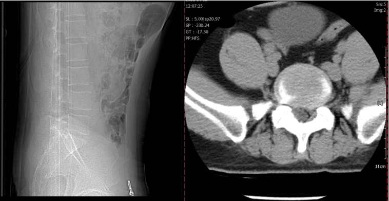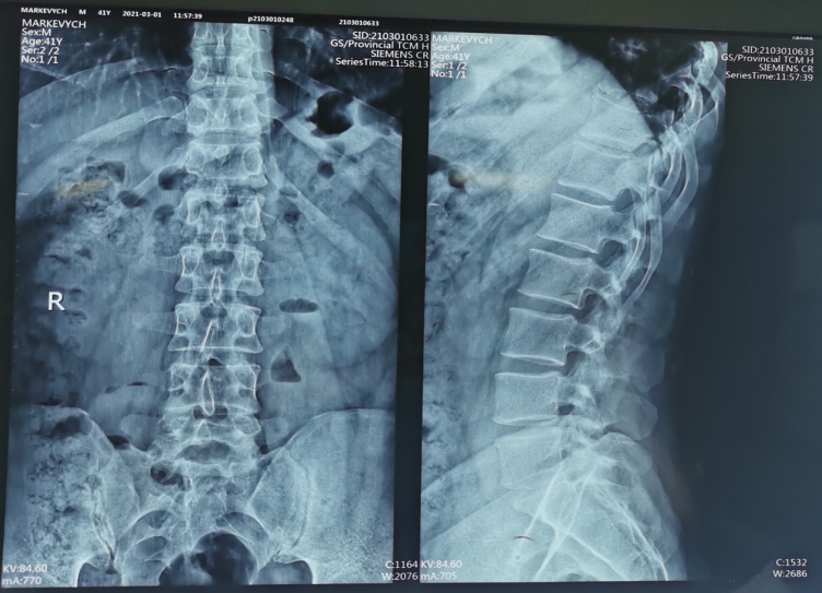 患者男性,41岁,系兰州交通大学乌克兰籍在读博士,因“腰痛伴左下肢疼痛、麻木1月余,加重1周”收住。该患者1月前出现腰痛伴左下肢疼痛、麻木症状,经针灸、理疗、口服药物等保守治疗后,疼痛未见缓解。1周前,症状加重,不能行走。病痛给他的日常生活和工作造成了极大的困扰,几经辗转,来到我院门诊就诊。进行了细致地查体后,明确诊断:1.腰椎间盘突出伴有神经根病(L5/S1,左侧);2.腰椎间盘突出症术后(L4/5);3.椎体终板炎(L5/S1)。结合病史临床表现及影像学检查,经与患者及家属充分沟通后收住入院。经完善相关检查后,于4月8日下午行全麻经皮脊柱内镜下经椎板间入路髓核摘除神经根减压术(L5/S1,左侧),术后患者腰痛及左下肢疼痛消失,平卧6小时后,患者配戴腰围下地活动,无特殊不适,患者对手术疗效非常满意。