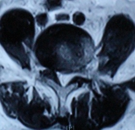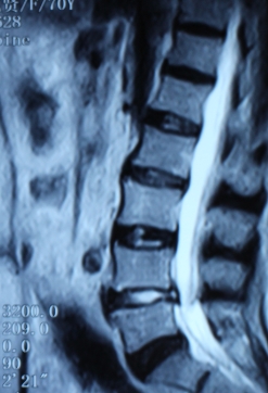 1.患者邹某,男,79岁,因“腰痛双下肢疼痛1年余,加重并间歇性跛行2月”于2014年3月26日入院。入院见患者腰痛病双下肢疼痛、麻木,间歇性跛行,行走约10余米,休息后略缓解。查:直腿抬高试验左40°(+),右55°(+),加强试验(+),腰背伸试验阳性。双侧膝腱未引出,跟腱反射减弱,双侧踇背伸肌力Ⅳ级。入院后诊断为腰椎管狭窄症。患者既往患糖尿病、高血压、冠心病病史。入院后完善检查,明确诊断,请相关科室会诊后认为手术风险极大。经科室讨论后行经皮椎间孔镜下髓核摘除并椎管扩大成形术,手术麻醉方式为局麻。于2014年3月29日行手术治疗,经椎间孔入路椎间孔镜下髓核摘除椎管扩大成形术。手术顺利,术中无出血,手术时间约40min。术中可与患者交流。术后患者即可感双下肢无疼痛,第二天佩戴腰围下地活动后双下肢无不适。术后半年复查腰椎MRI示突出髓核已摘除,神经根无受压。术后随访1年,患者目前病情恢复良好,无下肢疼痛、麻木,无间歇性跛行。