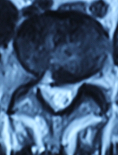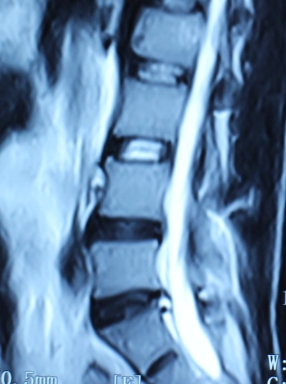 3. 患者张某,男,37岁,因“腰痛半年,加重并右下肢放射痛一周”入院。入院前曾保守治疗无效,症状逐渐加重。入院见患者腰部及右臀部疼痛,疼痛难忍,尤以夜间疼痛明显,严重影响睡眠,右小腿麻木,行走无力感。查:L4-S1棘突及棘突间压痛明显,直腿抬高试验右40°(+),右侧踇背伸肌力Ⅳ级,右足底皮肤感觉减退。入院后诊断为腰椎间盘突出症。患者既往体检。入院后完善检查,明确诊断,请科室讨论后认为患者年轻,以微创手术治疗,以减少对脊柱生理结构破坏,避免影响脊柱结构的稳定而加速脊柱退变。于入院后第三日行经皮椎间孔镜下髓核摘除术,手术麻醉方式为局麻。手术顺利,术中无出血,手术时间约30min。术中可与患者交流。术后患者腰痛及右下肢疼痛即可解除,第二天佩戴腰围下地活动后双下肢无不适。术后第三天出院,复查腰椎MRI示突出髓核已摘除,神经根无受压。术后随访1月,患者目前病情恢复良好,无腰痛及下肢疼痛。