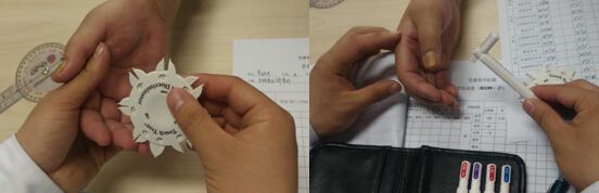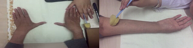 2) 闭上眼睛及集中精神感受物件(感受时用力握物,但不致产生痛的感觉)