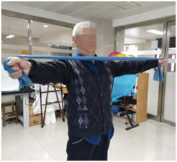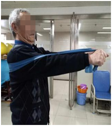 术后1周——主动的握拳运动及双侧的耸肩运动,并在治疗师的指导下进行肘、掌指、指间关节被动或主动活动。(若患者术后疼痛明显,锻炼后应予以冰敷,将冰袋置于肩附近,以达到消肿、止痛、减少渗出的目的)