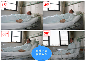 病床的角度从15°、45°、60°以此类推,循序渐进,直至90°,每次坐位时间也依次延长,即30、45、60分钟,直到120分钟止。一般每天摇高1-2次,以训练患者能站立较长时间而不晕倒。