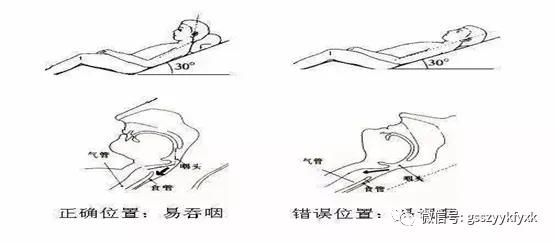 避免在精神混乱时进食,如刚睡醒时;避免嘈杂的环境,使精神更集中;鼓励缓慢进食,少食多餐;给予患者口头提示,口头提示可帮助患者协调吞咽的动作,例如:吞下去,再吞一次, 闭合嘴唇用力吞等指令;分泌物较多者,进食前先排痰;口腔感觉差的患者,把食物送入口中时,可适当增加汤匙下压舌部的力量,有助于刺激感觉,诱发吞咽动作;药物需单独喂食,不要混入食物内,粘稠度大的药物必要时可加入少许温水,使之更容易吞咽。