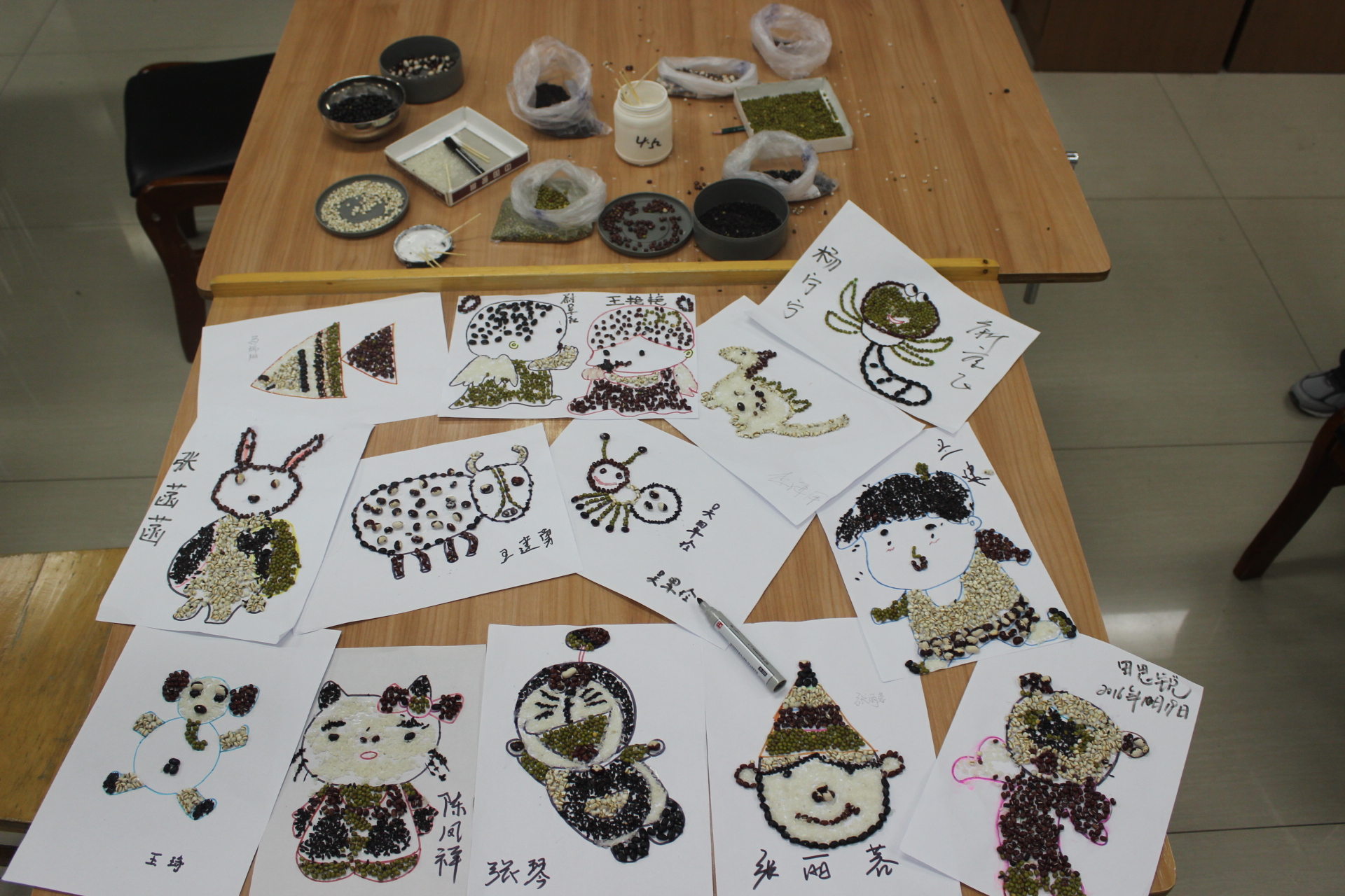 在举办活动之前,统计了手功能障碍的患者及他们喜爱的图案,并准备了相关图案的简笔模板,购买了所需豆类。活动开始期间为了提高患者的积极性和调动整个活动的氛围,在自我介绍环节中通过举手进行自我介绍和展示才艺表演就可优先选择自己喜爱的模板,大家都特别积极,为大家呈现了歌曲串烧等节目,作品完成后大家分享展示了自己的作品,有的患者向大家分享了自己在生病后的内心情感。
