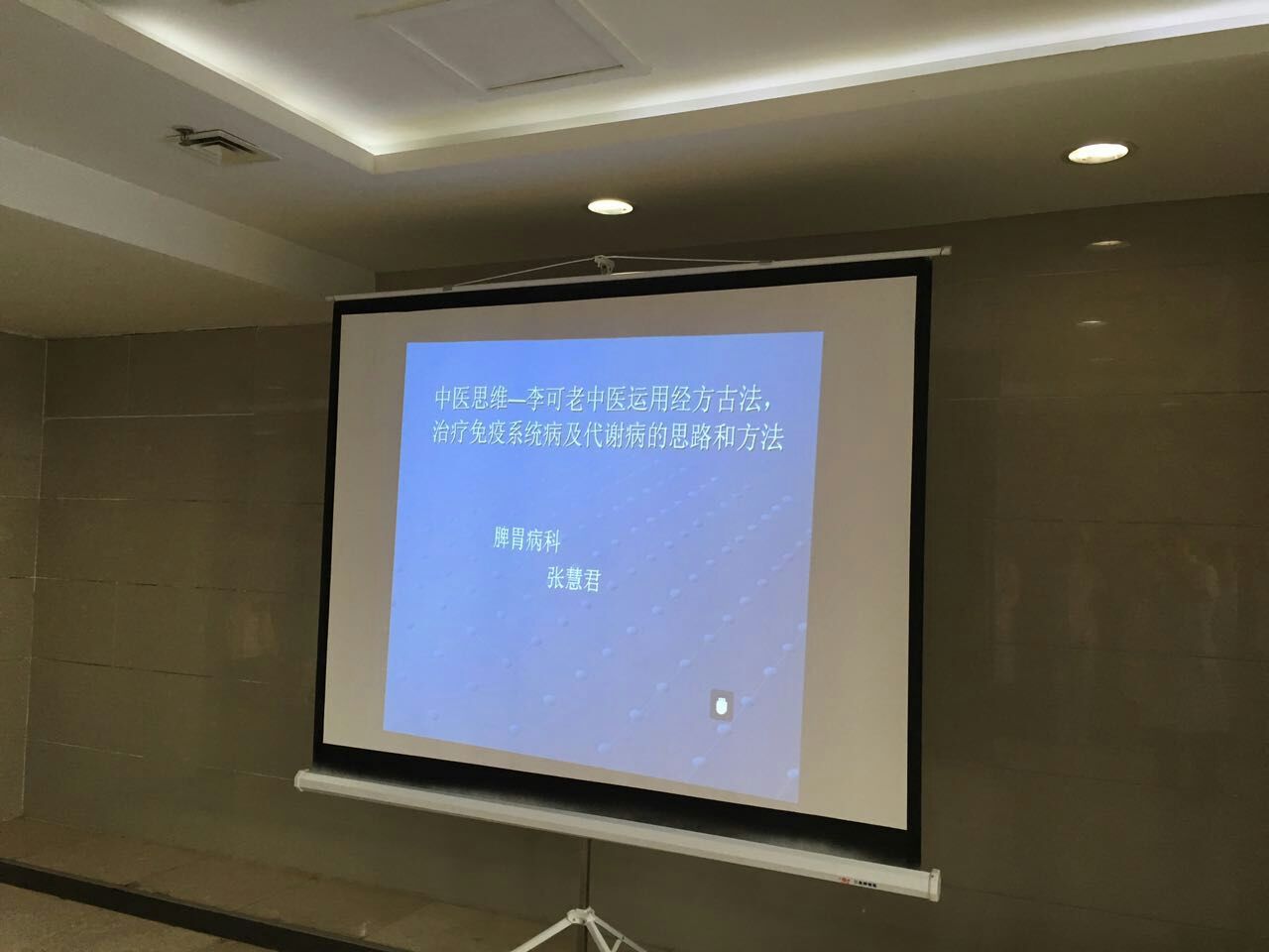 2016年9月14日我科例行每周一次的晨间教学,由我科张慧君主治医师对李可老中医运用经方古法,治疗免疫系统疾病及代谢病的思路与方法做了系统的介绍与分享。李可教授是我国著名学派“火神派”的代表人物,在疑难杂症的治疗方面又独到的经验方法。通过张慧君主治医师的讲授,大家对李可教授治疗免疫系统疾病及代谢疾病的方法有了一定的了解,同时也为我们治疗此类病证提供了新的思路。本次晨间教学由田旭东主任主持,脾胃病科、肝病科全体医护人员及实习生、见习生参加了此次晨间教学。